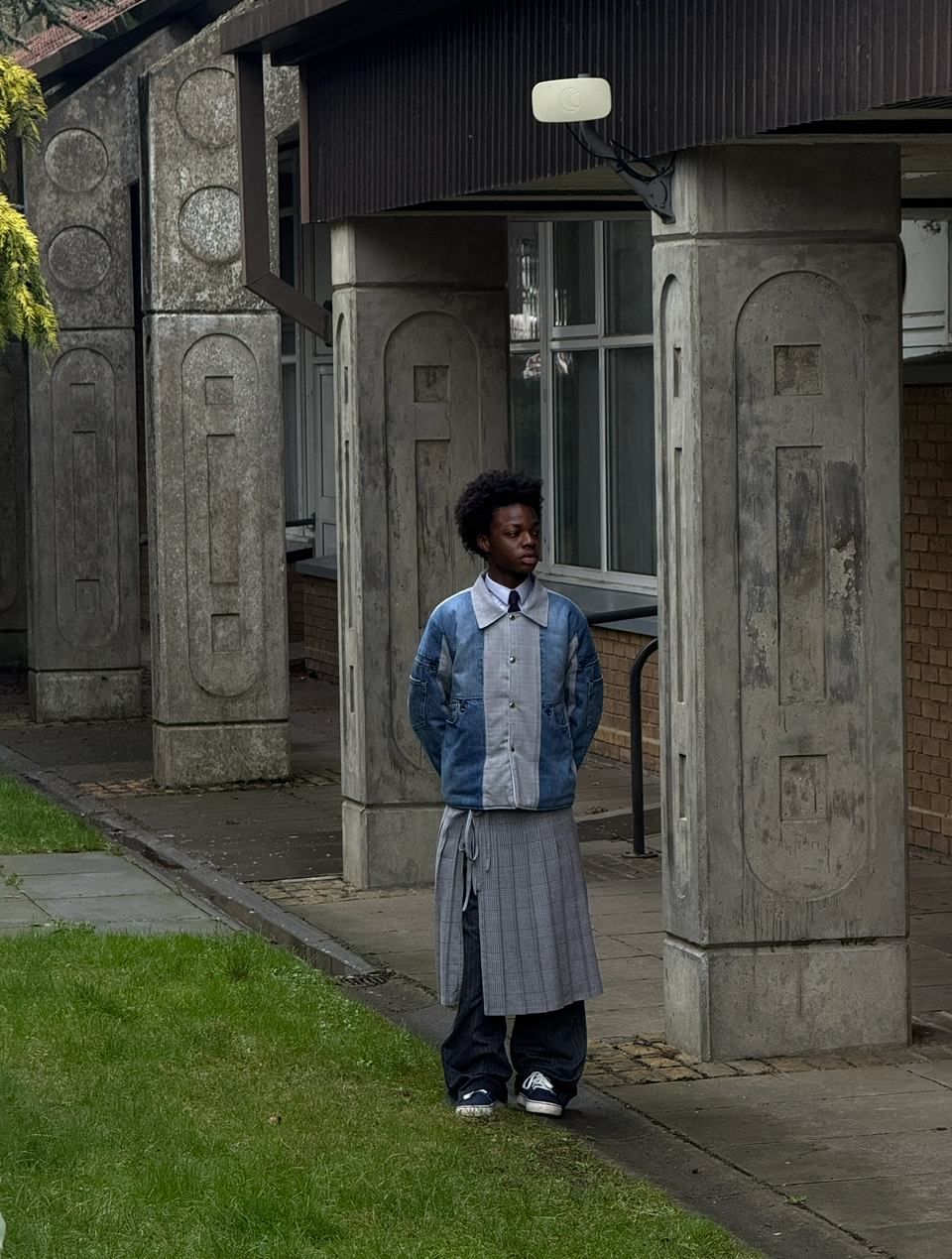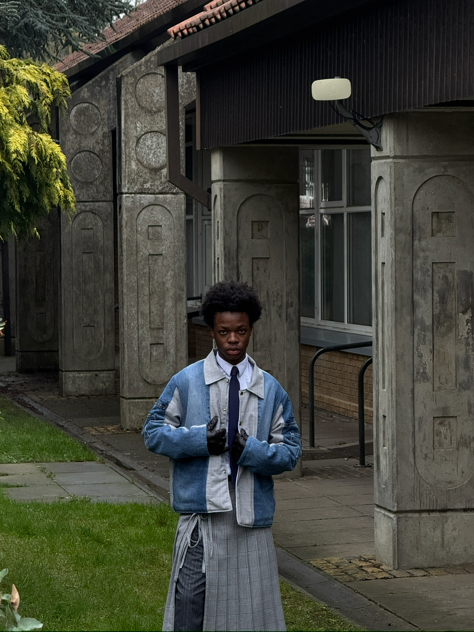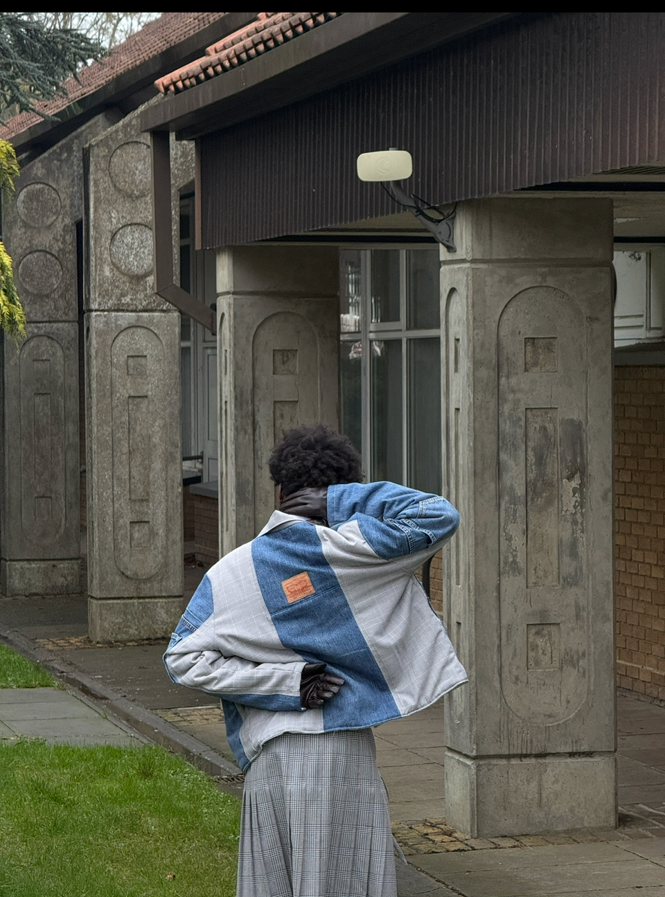 Reworked from a pair of Levi's + a check skirt