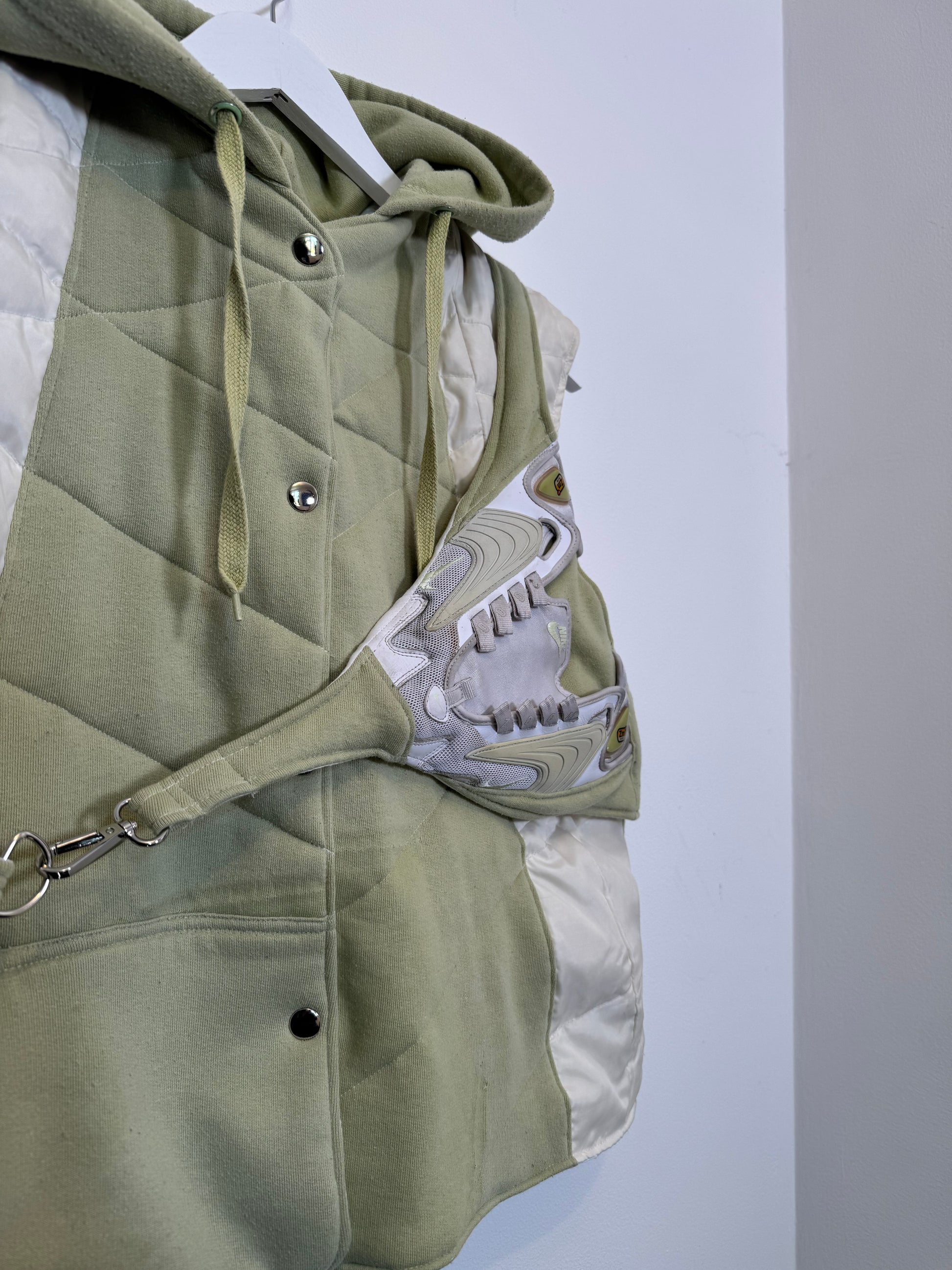Reworked from Nike Zoom trainers, a hoodie + puffer coat