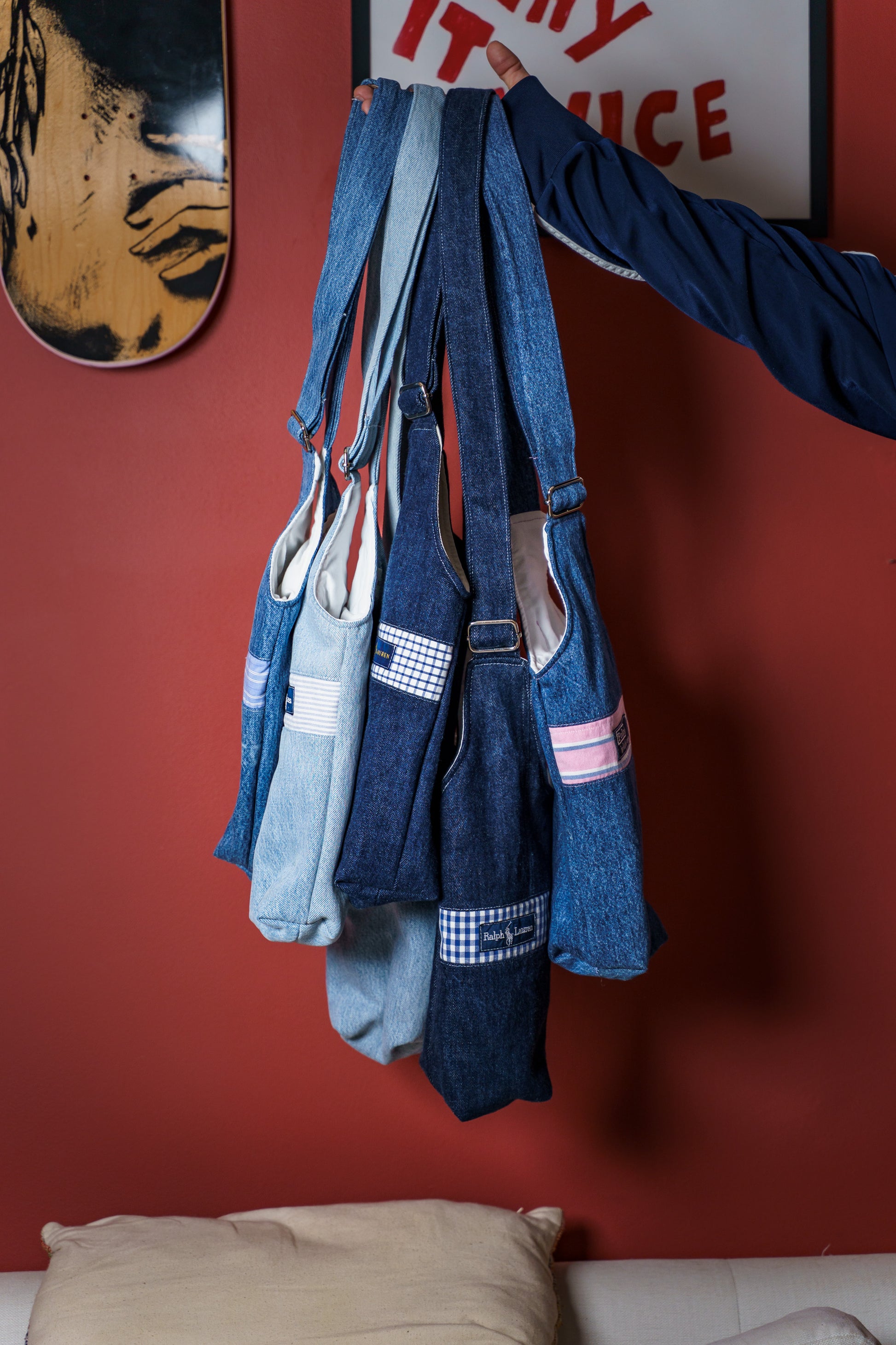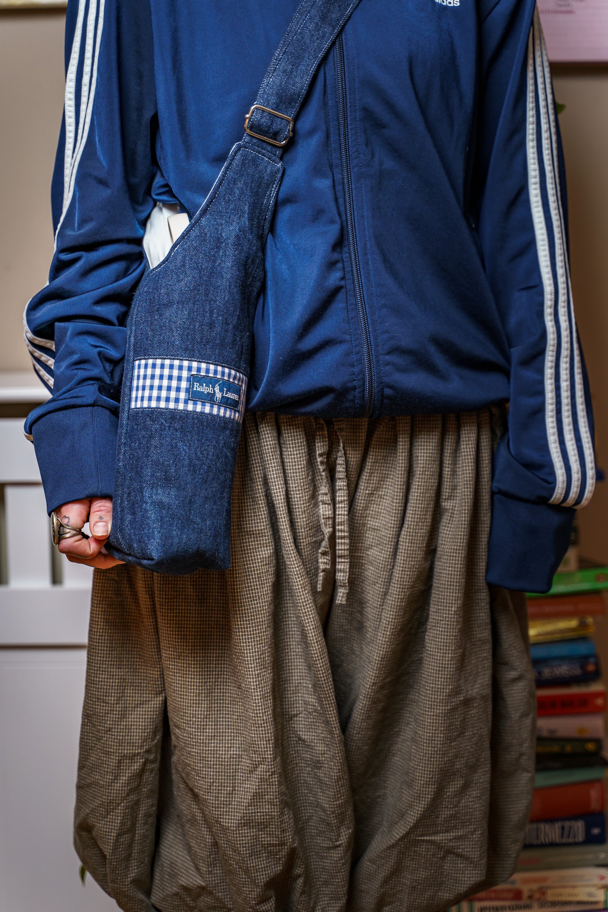 REWORKED FROM a damaged Ralph Lauren Shirt // Fully lined + Padded with an adjustable strap. These were sourced from TWO VINTAGE and have been washed + processed to use all the undamaged parts of the original shirt. This is a complete 1of1 however, we have more shirts to make custom!