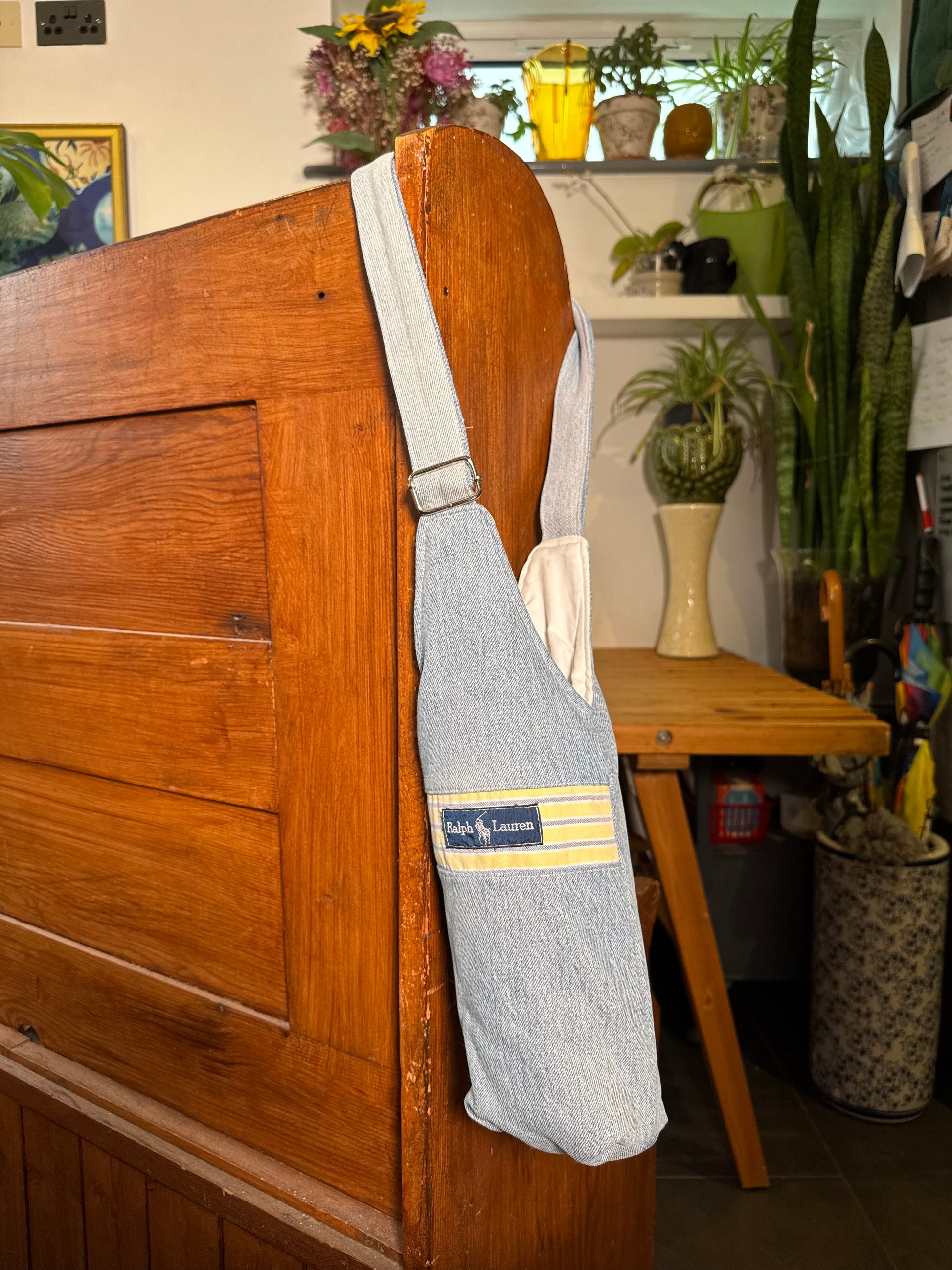 REWORKED FROM a damaged Ralph Lauren Shirt // Fully lined + Padded with an adjustable strap. These were sourced from TWO VINTAGE and have been washed + processed to use all the undamaged parts of the original shirt. This is a complete 1of1 however, we have more shirts to make custom!