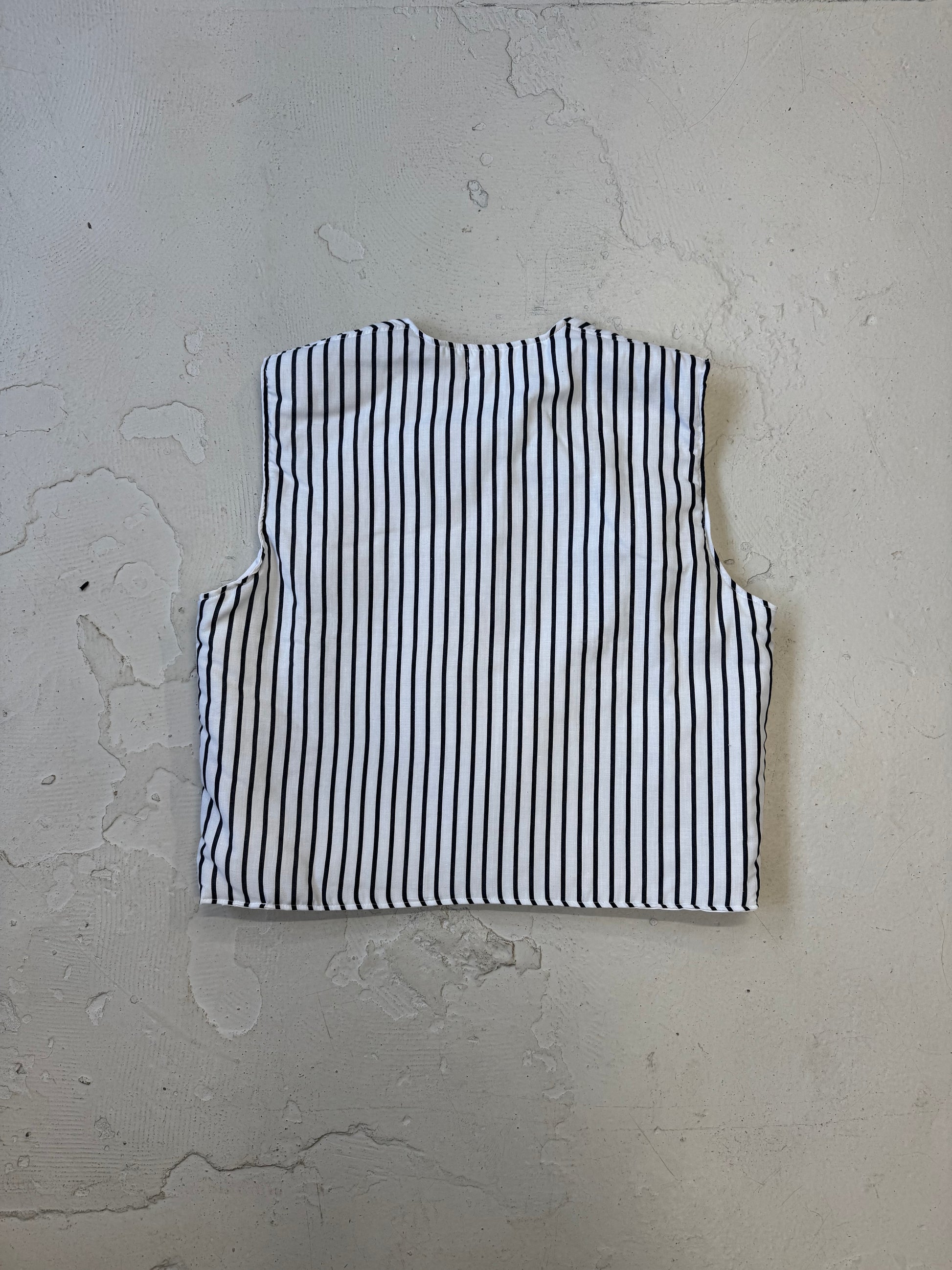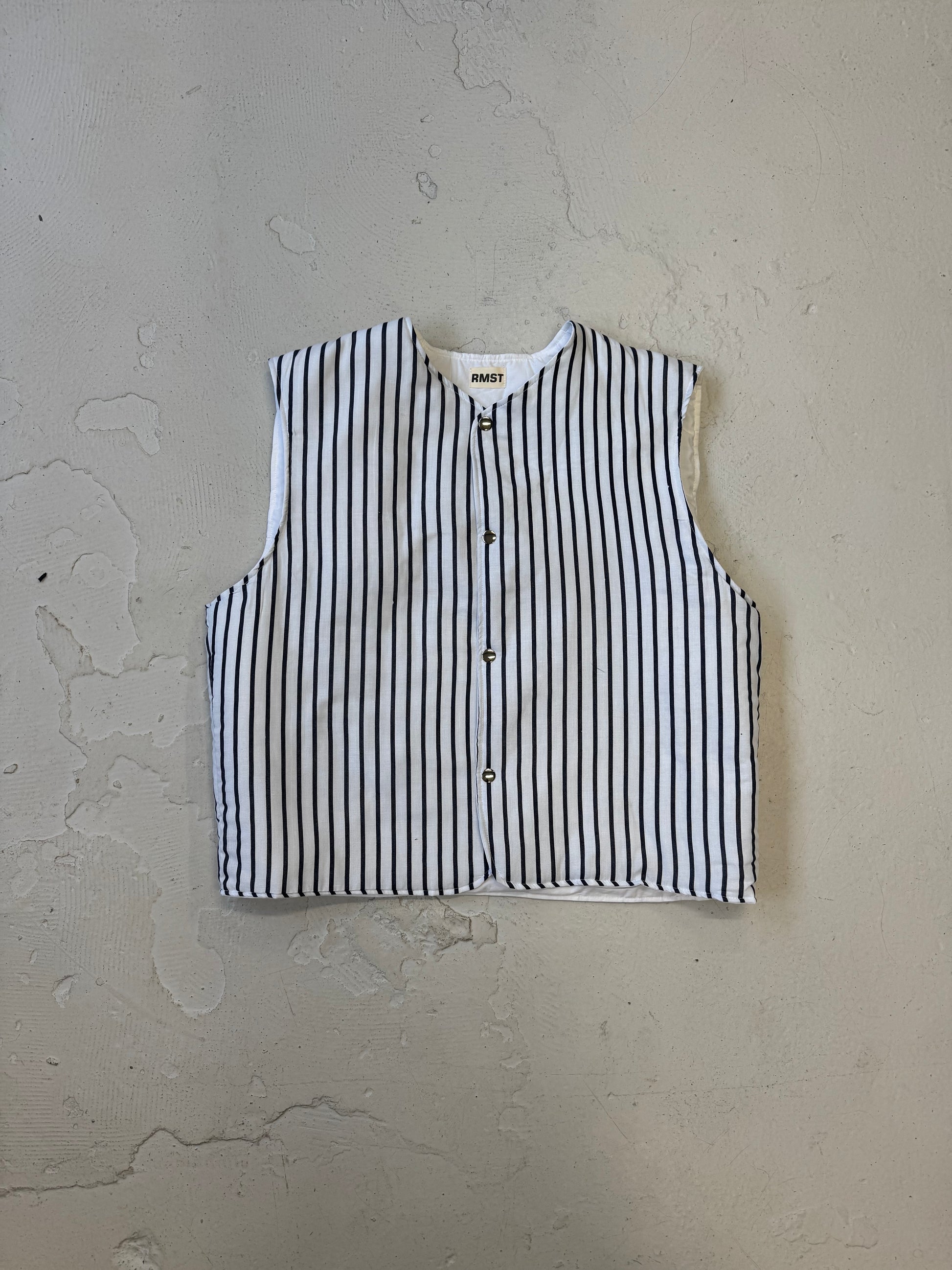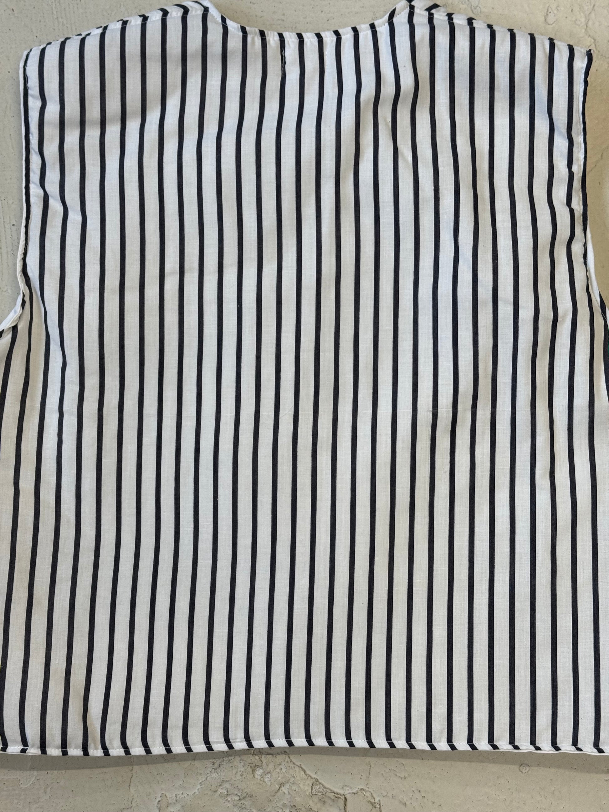 REWORKED FROM A WHITE + NAVY STRIPED DUVET SET, FULLY LINED, PADDED WITH A POPPER FASTENING.